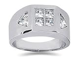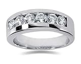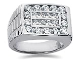 Stand up and take notice of the Ovation 2.40 ct. tw. Men's Ring, which has stunning good looks and 63 top-notch VS1-VS2, near colorless diamonds. Our designers have placed the round and baguette diamonds in 5 rows across the flat top. Angled sides exhibit pave set stones, all in an elite 18k white gold band. A forceful presence for the refined man.Price: $5,950.00